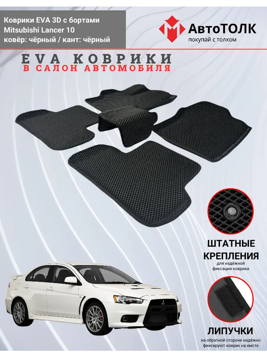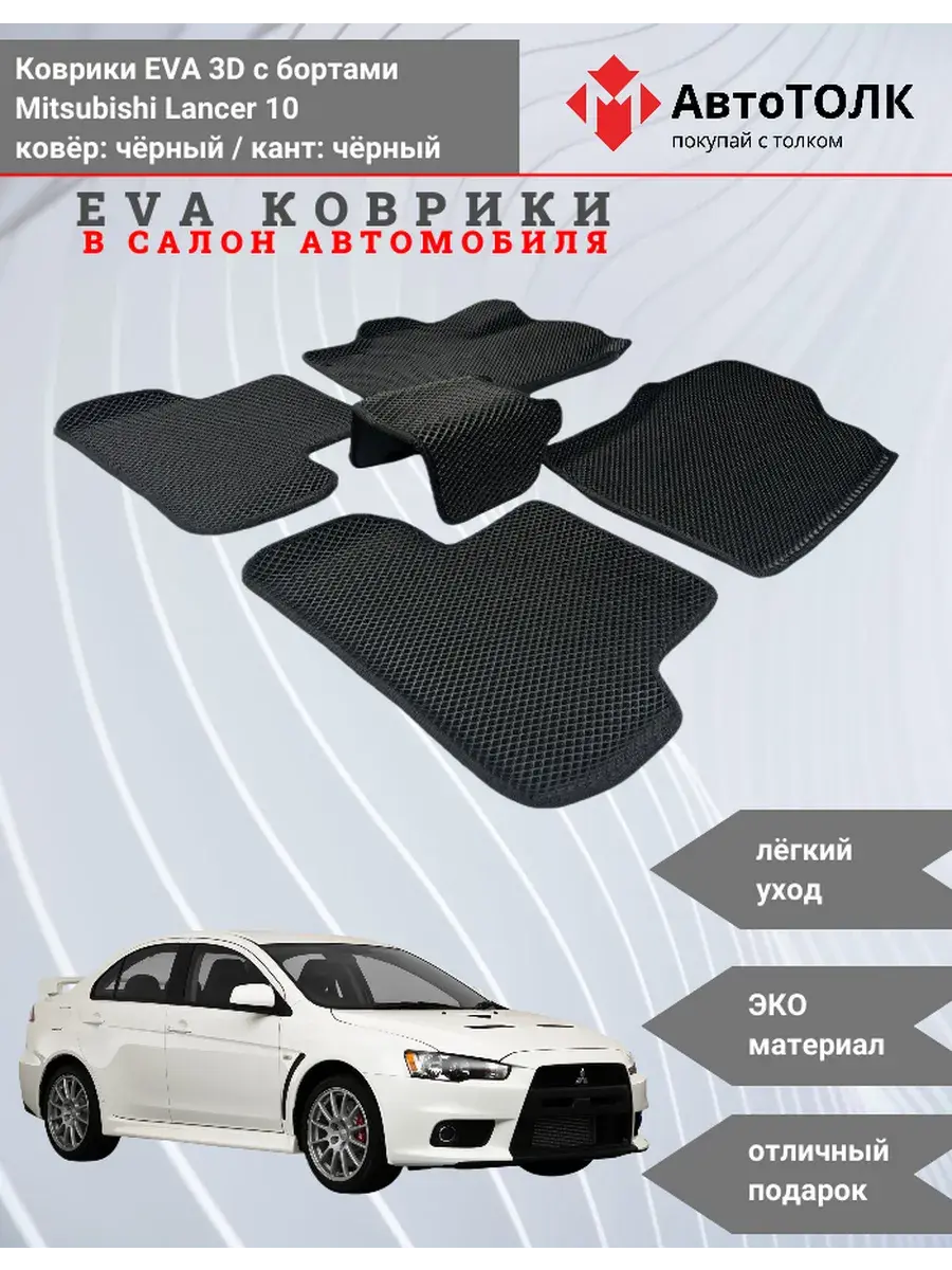Автомобильные коврики ЕВА (EVA) 3D с бортами для Mitsubishi Lancer 10. Устали от грязи под ногами в вашем автомобиле и постоянных поездок на автомойку? Замените штатные резиновые коврики высокотехнологичными EVA коврами с бортами с традиционной фактурой ромб. В комплект ЭВО ковриков входит: водительский, пассажирский, 2 коврика заднего ряда и перемычка на тоннель.