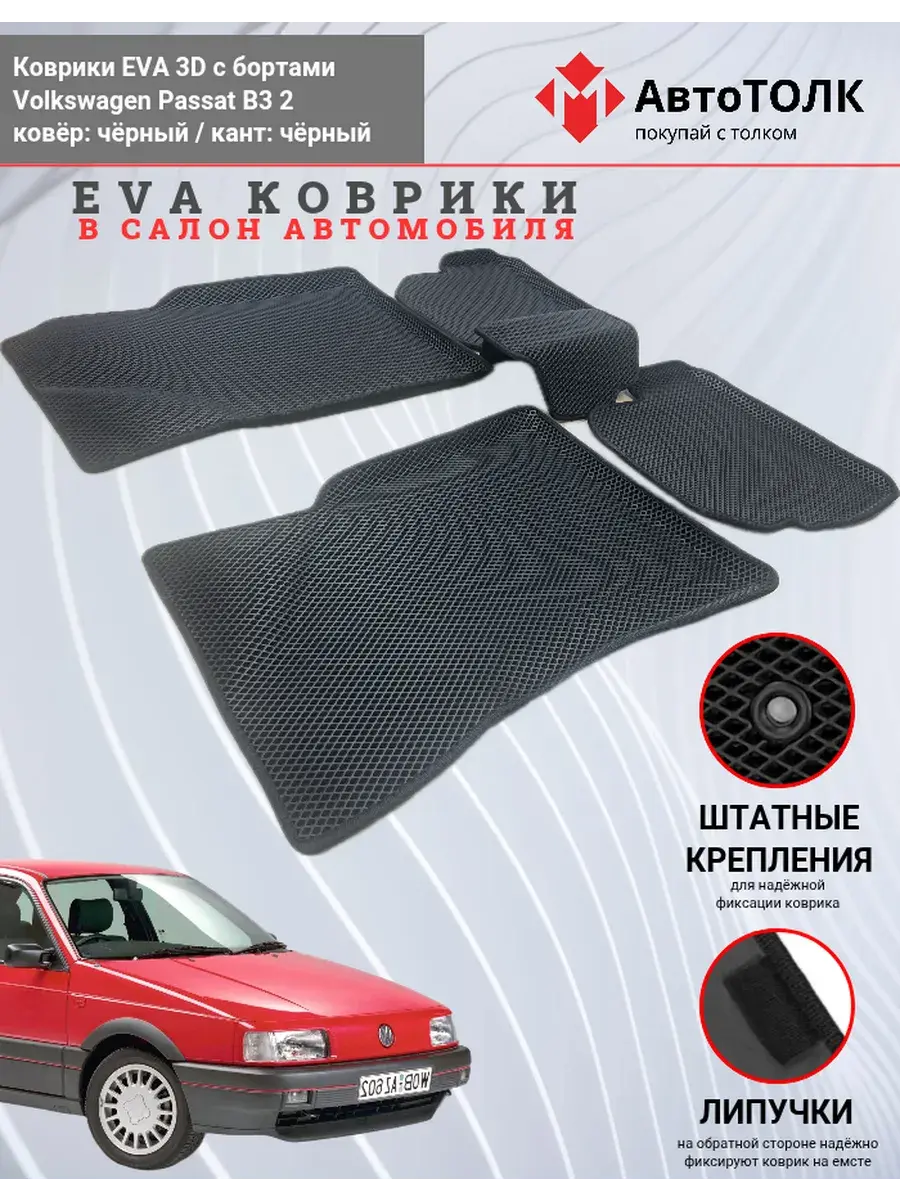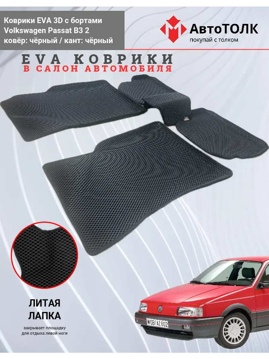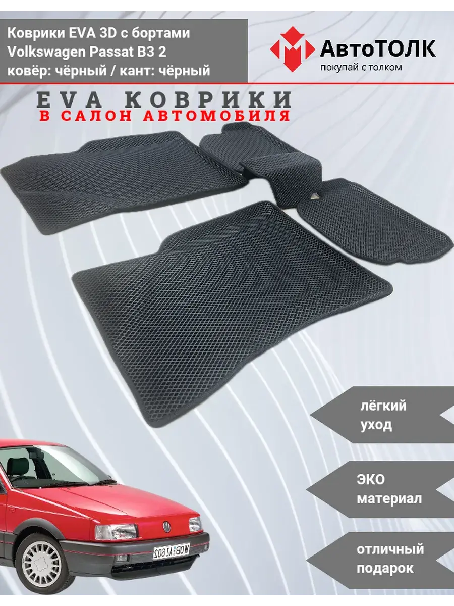 Автомобильные коврики ЕВА (EVA) 3D с бортами для Volkswagen Passat B3. Устали от грязи под ногами в вашем автомобиле и постоянных поездок на автомойку? Замените штатные резиновые коврики высокотехнологичными EVA коврами с бортами с традиционной фактурой ромб. В комплект ЭВО ковриков входит: водительский, пассажирский, 2 коврика заднего ряда и перемычка на тоннель.