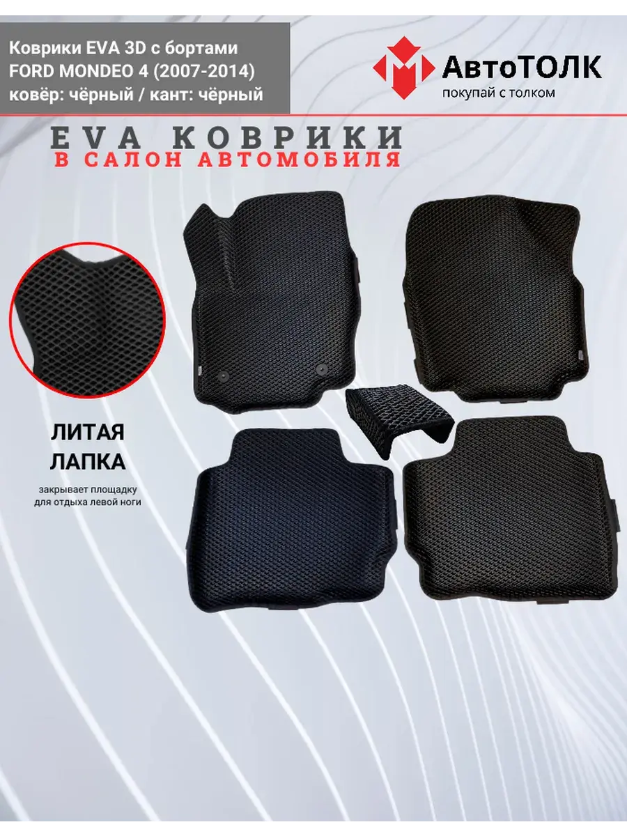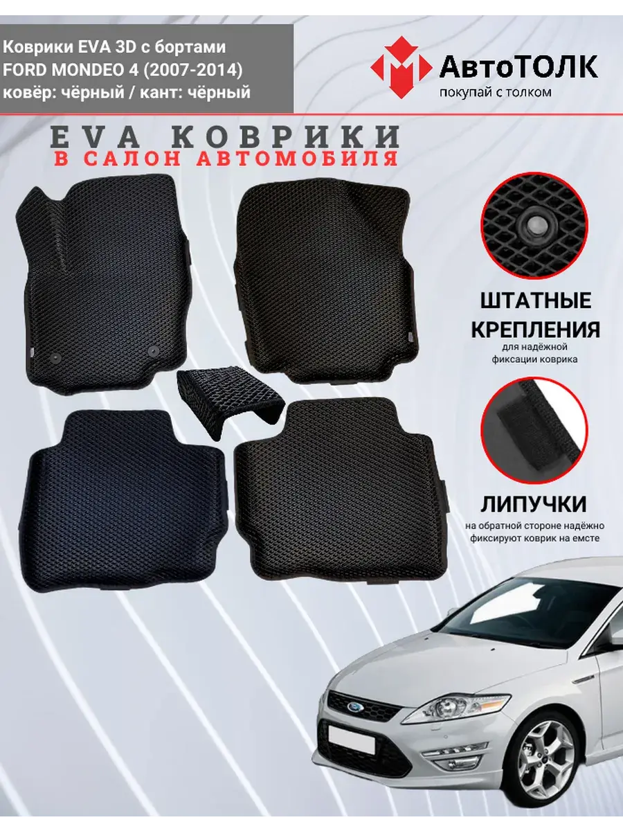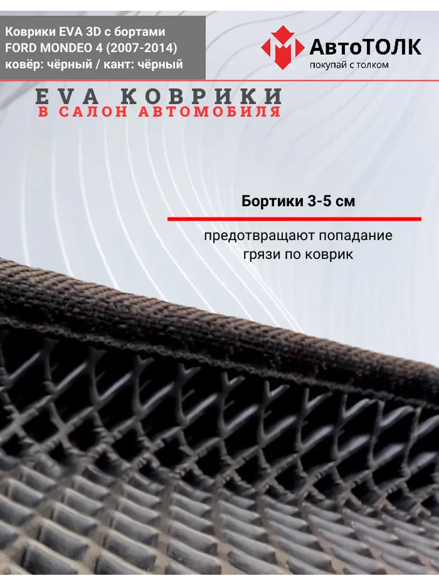 Автомобильные коврики ЕВА (EVA) 3D с бортами для FORD MONDEO 4. Устали от грязи под ногами в вашем автомобиле и постоянных поездок на автомойку? Замените штатные резиновые коврики высокотехнологичными EVA коврами с бортами с традиционной фактурой ромб. В комплект ЭВО ковриков входит: водительский, пассажирский, 2 коврика заднего ряда и перемычка на тоннель.