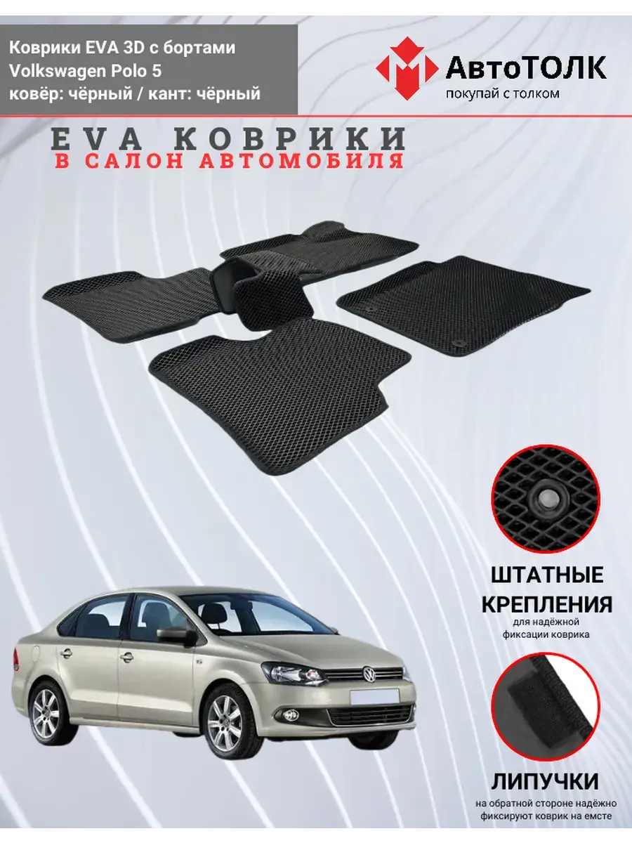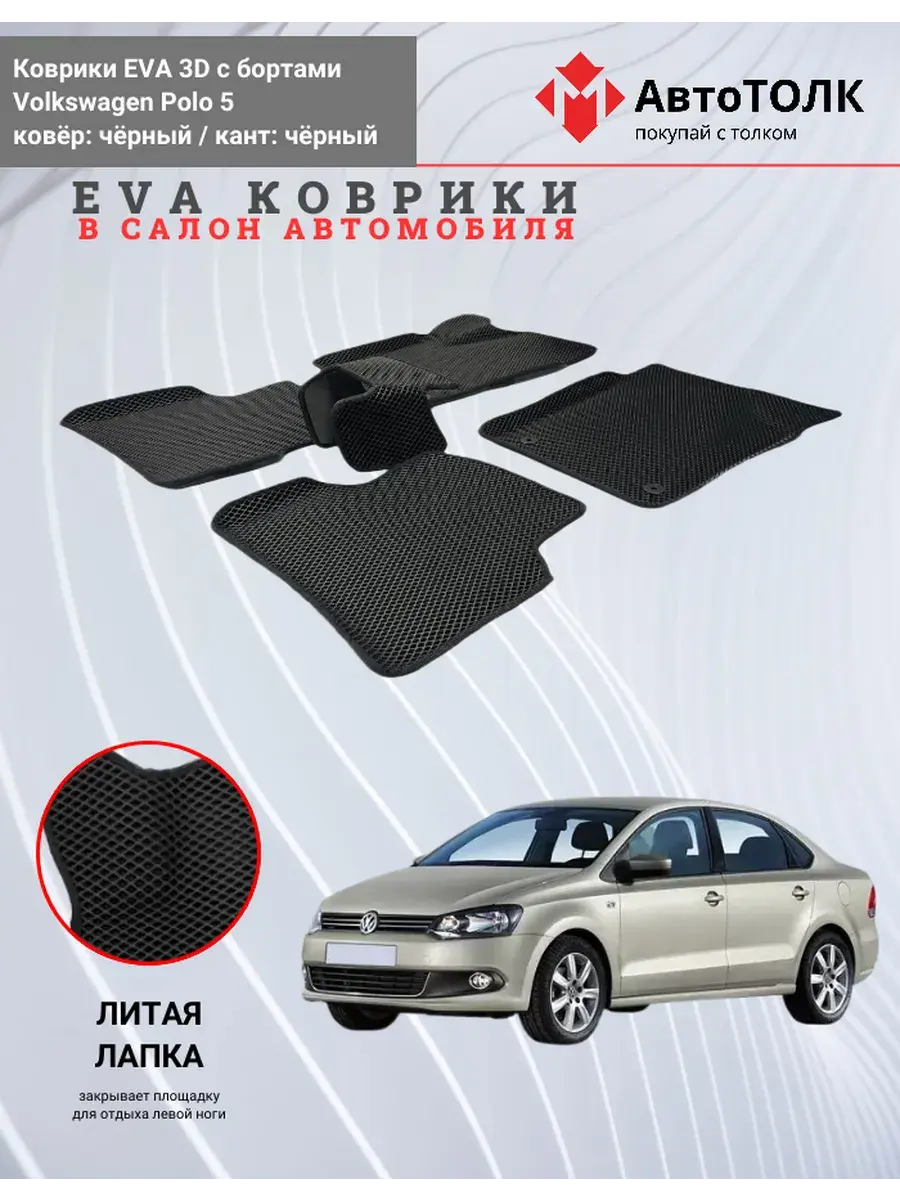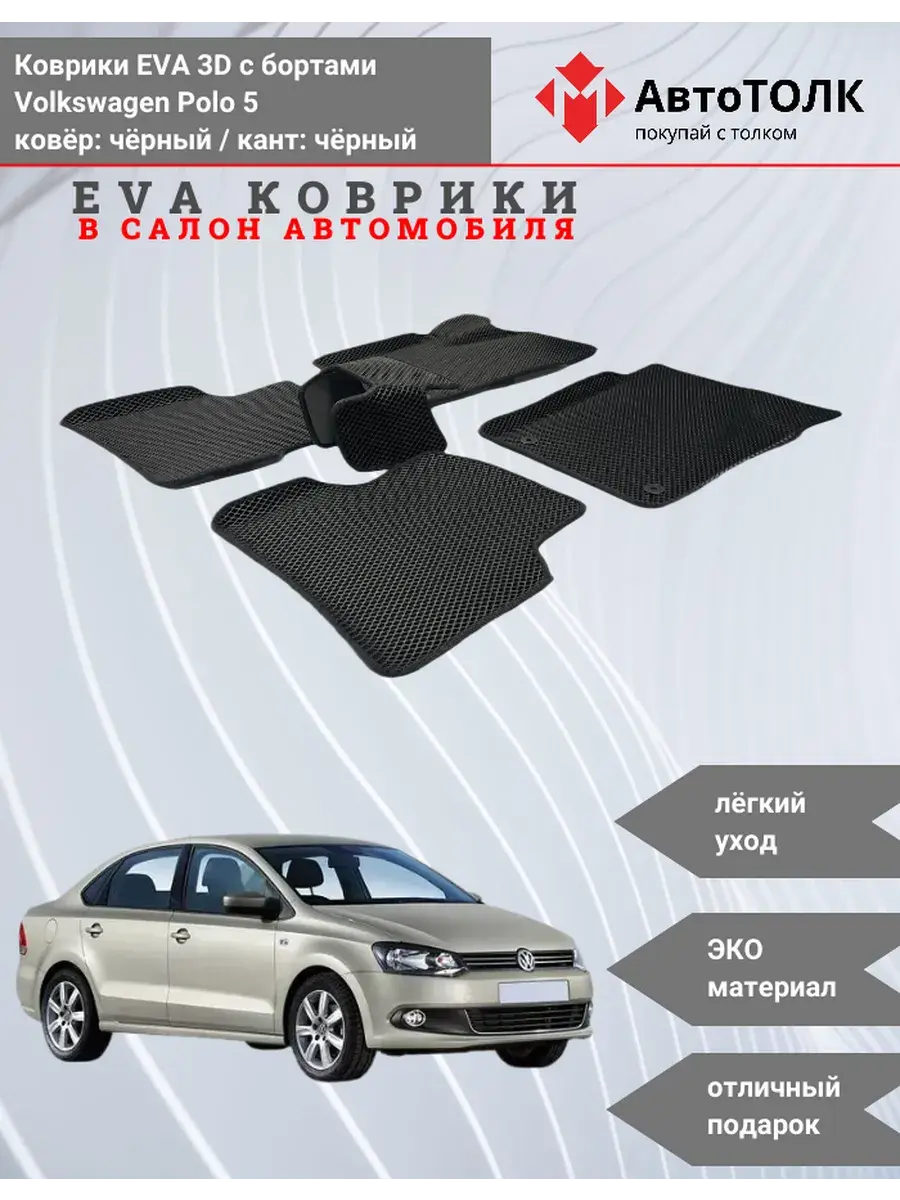 Автомобильные коврики ЕВА (EVA) 3D с бортами для Volkswagen Polo 5. Устали от грязи под ногами в вашем автомобиле и постоянных поездок на автомойку? Замените штатные резиновые коврики высокотехнологичными EVA коврами с бортами с традиционной фактурой ромб. В комплект ЭВО ковриков входит: водительский, пассажирский, 2 коврика заднего ряда и перемычка на тоннель.