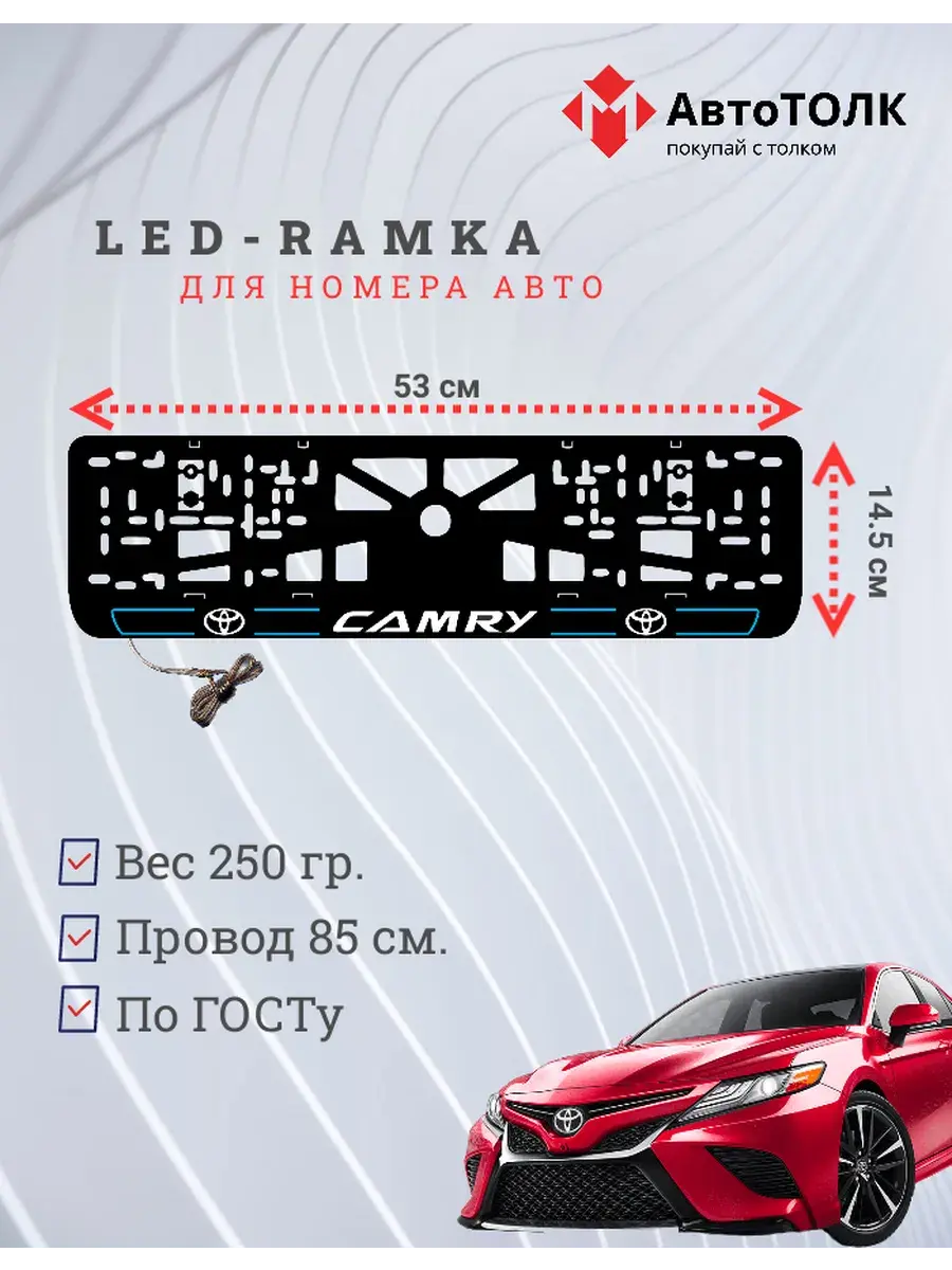 Ищете стильное и практичное обновление для вашего автомобиля? Рамка для номера с LED подсветкой надписи от бренда АвтоТОЛК — именно то, что вам нужно! Это инновационное решение не только придаст вашему автомобилю современный вид, но и повысит его заметность на дороге. Яркая ЛЭД рамка под номер обеспечивает четкое и равномерное освещение, что гарантирует отличную видимость вашего государственного номера в любое время суток и при любых погодных условиях. За счет использования высококачественных LED элементов, рамка отличается длительным сроком службы. Номерная рамка с вашим лого или логотипом торговой марки станет оригинальным дополнением, подчеркивающим индивидуальность вашего авто. Устанавливать рамки с LED подсветкой легко и удобно, они совместимы со стандартными номерными знаками и не требуют специальных навыков для монтажа. Независимо от того, выбираете ли вы рамки с ЛЭД подсветкой для себя или в подарок автолюбителю, этот автоаксессуар станет надежным и стильным приобретением. Тонкий, но прочный корпус рамки выполнен из высококачественных материалов, что обеспечивает устойчивость к механическим повреждениям, влаге и неблагоприятным погодным условиям. Обновите внешний вид своего автомобиля с применением современных технологий — номерные рамки с LED подсветкой от АвтоТОЛК это комбинация стиля, удобства и безопасности.