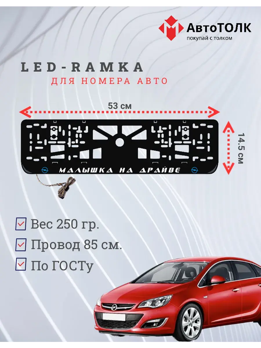 Ищете стильное и практичное обновление для вашего автомобиля? Рамка для номера с LED подсветкой надписи от бренда АвтоТОЛК — именно то, что вам нужно! Это инновационное решение не только придаст вашему автомобилю современный вид, но и повысит его заметность на дороге. Яркая ЛЭД рамка под номер обеспечивает четкое и равномерное освещение, что гарантирует отличную видимость вашего государственного номера в любое время суток и при любых погодных условиях. За счет использования высококачественных LED элементов, рамка отличается длительным сроком службы. Номерная рамка с вашим лого или логотипом торговой марки станет оригинальным дополнением, подчеркивающим индивидуальность вашего авто. Устанавливать рамки с LED подсветкой легко и удобно, они совместимы со стандартными номерными знаками и не требуют специальных навыков для монтажа. Независимо от того, выбираете ли вы рамки с ЛЭД подсветкой для себя или в подарок автолюбителю, этот автоаксессуар станет надежным и стильным приобретением. Тонкий, но прочный корпус рамки выполнен из высококачественных материалов, что обеспечивает устойчивость к механическим повреждениям, влаге и неблагоприятным погодным условиям. Обновите внешний вид своего автомобиля с применением современных технологий — номерные рамки с LED подсветкой от АвтоТОЛК это комбинация стиля, удобства и безопасности.