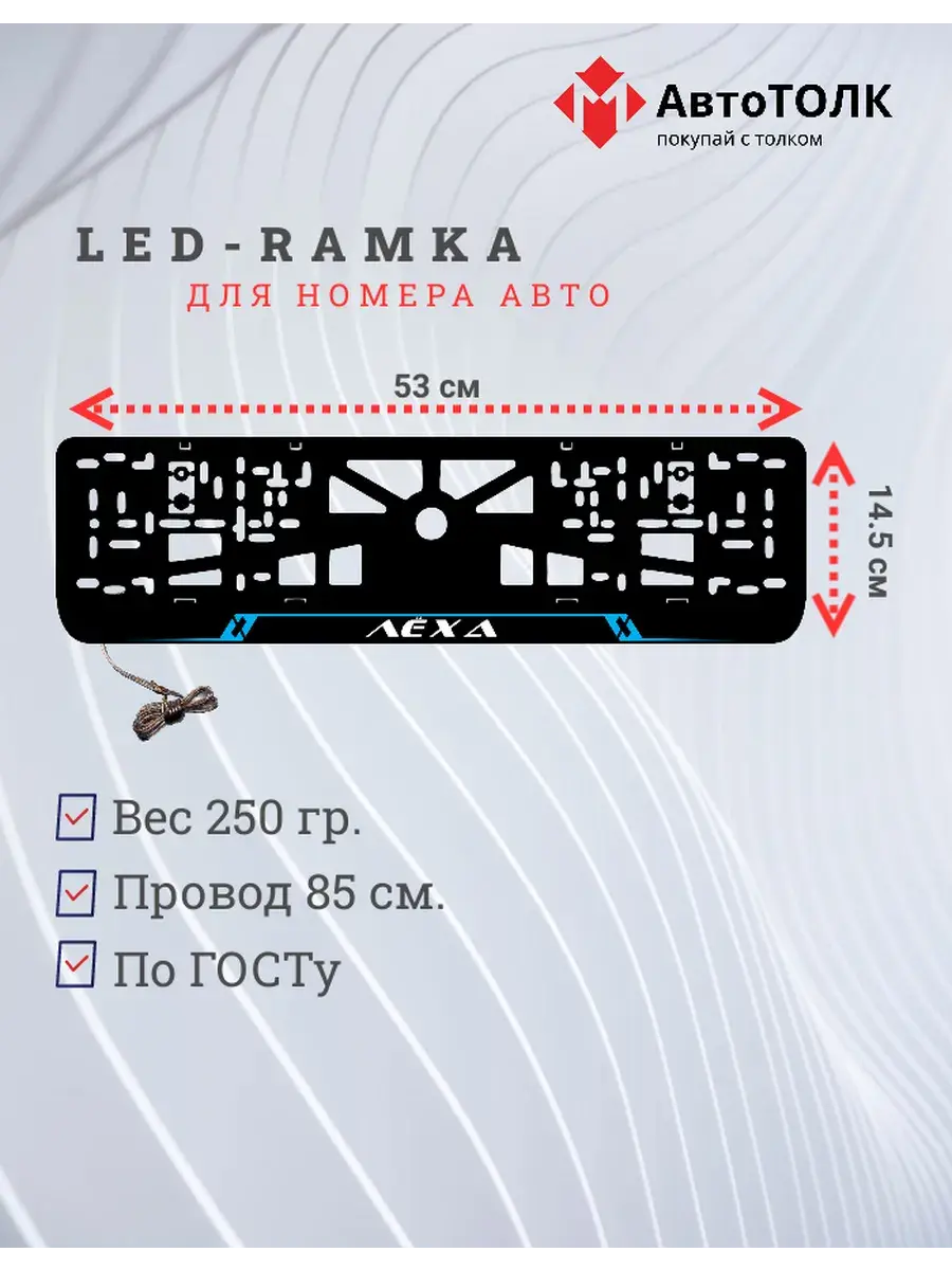 Ищете стильное и практичное обновление для вашего автомобиля? Рамка для номера с LED подсветкой надписи от бренда АвтоТОЛК — именно то, что вам нужно! Это инновационное решение не только придаст вашему автомобилю современный вид, но и повысит его заметность на дороге. Яркая ЛЭД рамка под номер обеспечивает четкое и равномерное освещение, что гарантирует отличную видимость вашего государственного номера в любое время суток и при любых погодных условиях. За счет использования высококачественных LED элементов, рамка отличается длительным сроком службы. Номерная рамка с вашим лого или логотипом торговой марки станет оригинальным дополнением, подчеркивающим индивидуальность вашего авто. Устанавливать рамки с LED подсветкой легко и удобно, они совместимы со стандартными номерными знаками и не требуют специальных навыков для монтажа. Независимо от того, выбираете ли вы рамки с ЛЭД подсветкой для себя или в подарок автолюбителю, этот автоаксессуар станет надежным и стильным приобретением. Тонкий, но прочный корпус рамки выполнен из высококачественных материалов, что обеспечивает устойчивость к механическим повреждениям, влаге и неблагоприятным погодным условиям. Обновите внешний вид своего автомобиля с применением современных технологий — номерные рамки с LED подсветкой от АвтоТОЛК это комбинация стиля, удобства и безопасности.