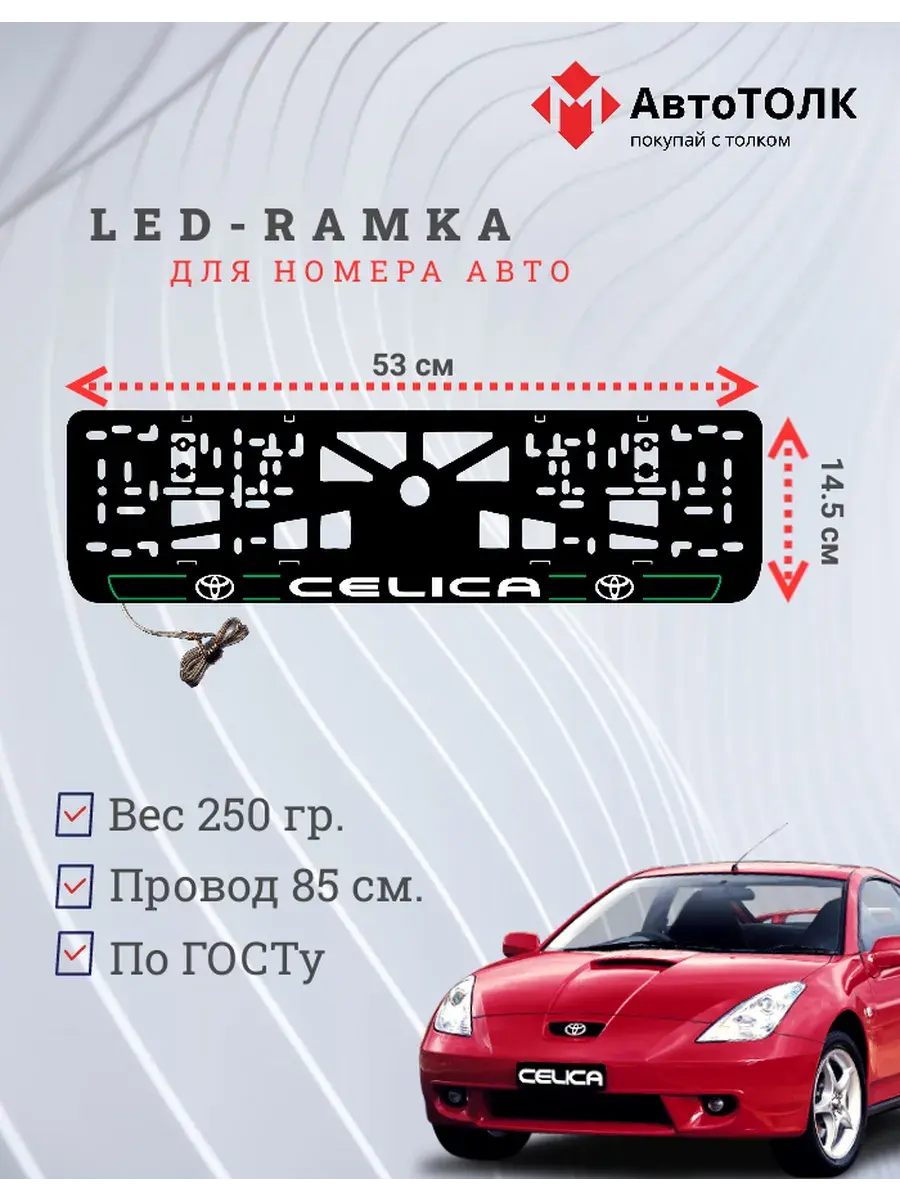 Ищете стильное и практичное обновление для вашего автомобиля? Рамка для номера с LED подсветкой надписи от бренда АвтоТОЛК именно то, что вам нужно! Это инновационное решение не только придаст вашему автомобилю современный вид, но и повысит его заметность на дороге. Яркая ЛЭД рамка под номер обеспечивает четкое и равномерное освещение, что гарантирует отличную видимость вашего государственного номера в любое время суток и при любых погодных условиях. За счет использования высококачественных LED элементов, рамка отличается длительным сроком службы. Номерная рамка с вашим лого или логотипом торговой марки станет оригинальным дополнением, подчеркивающим индивидуальность вашего авто. Устанавливать рамки с LED подсветкой легко и удобно, они совместимы со стандартными номерными знаками и не требуют специальных навыков для монтажа. Независимо от того, выбираете ли вы рамки с ЛЭД подсветкой для себя или в подарок автолюбителю, этот автоаксессуар станет надежным и стильным приобретением. Тонкий, но прочный корпус рамки выполнен из высококачественных материалов, что обеспечивает устойчивость к механическим повреждениям, влаге и неблагоприятным погодным условиям. Обновите внешний вид своего автомобиля с применением современных технологий номерные рамки с LED подсветкой от АвтоТОЛК это комбинация стиля, удобства и безопасности.