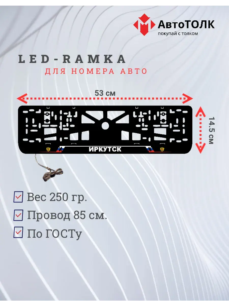 Ищете стильное и практичное обновление для вашего автомобиля? Рамка для номера с LED подсветкой надписи от бренда АвтоТОЛК — именно то, что вам нужно! Это инновационное решение не только придаст вашему автомобилю современный вид, но и повысит его заметность на дороге. Яркая ЛЭД рамка под номер обеспечивает четкое и равномерное освещение, что гарантирует отличную видимость вашего государственного номера в любое время суток и при любых погодных условиях. За счет использования высококачественных LED элементов, рамка отличается длительным сроком службы. Номерная рамка с вашим лого или логотипом торговой марки станет оригинальным дополнением, подчеркивающим индивидуальность вашего авто. Устанавливать рамки с LED подсветкой легко и удобно, они совместимы со стандартными номерными знаками и не требуют специальных навыков для монтажа. Независимо от того, выбираете ли вы рамки с ЛЭД подсветкой для себя или в подарок автолюбителю, этот автоаксессуар станет надежным и стильным приобретением. Тонкий, но прочный корпус рамки выполнен из высококачественных материалов, что обеспечивает устойчивость к механическим повреждениям, влаге и неблагоприятным погодным условиям. Обновите внешний вид своего автомобиля с применением современных технологий — номерные рамки с LED подсветкой от АвтоТОЛК это комбинация стиля, удобства и безопасности.