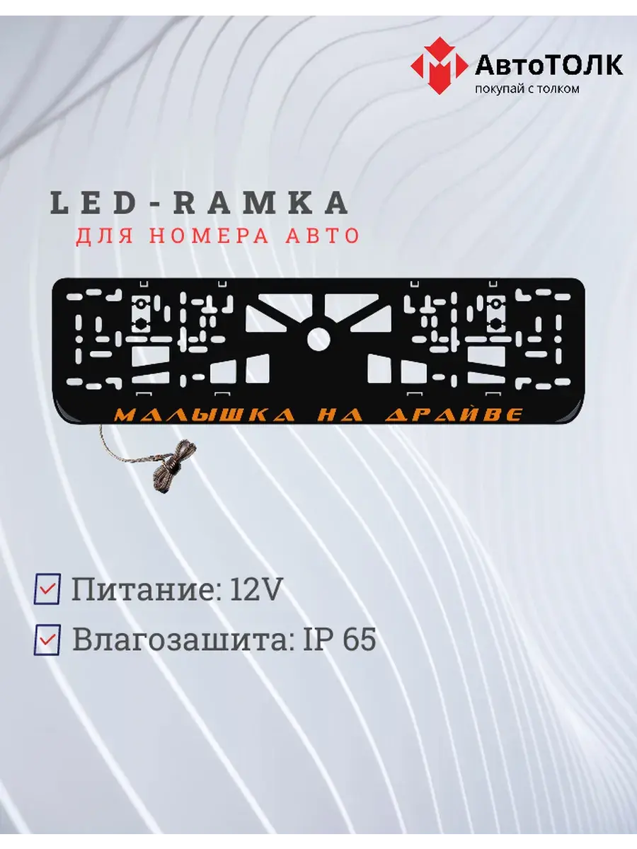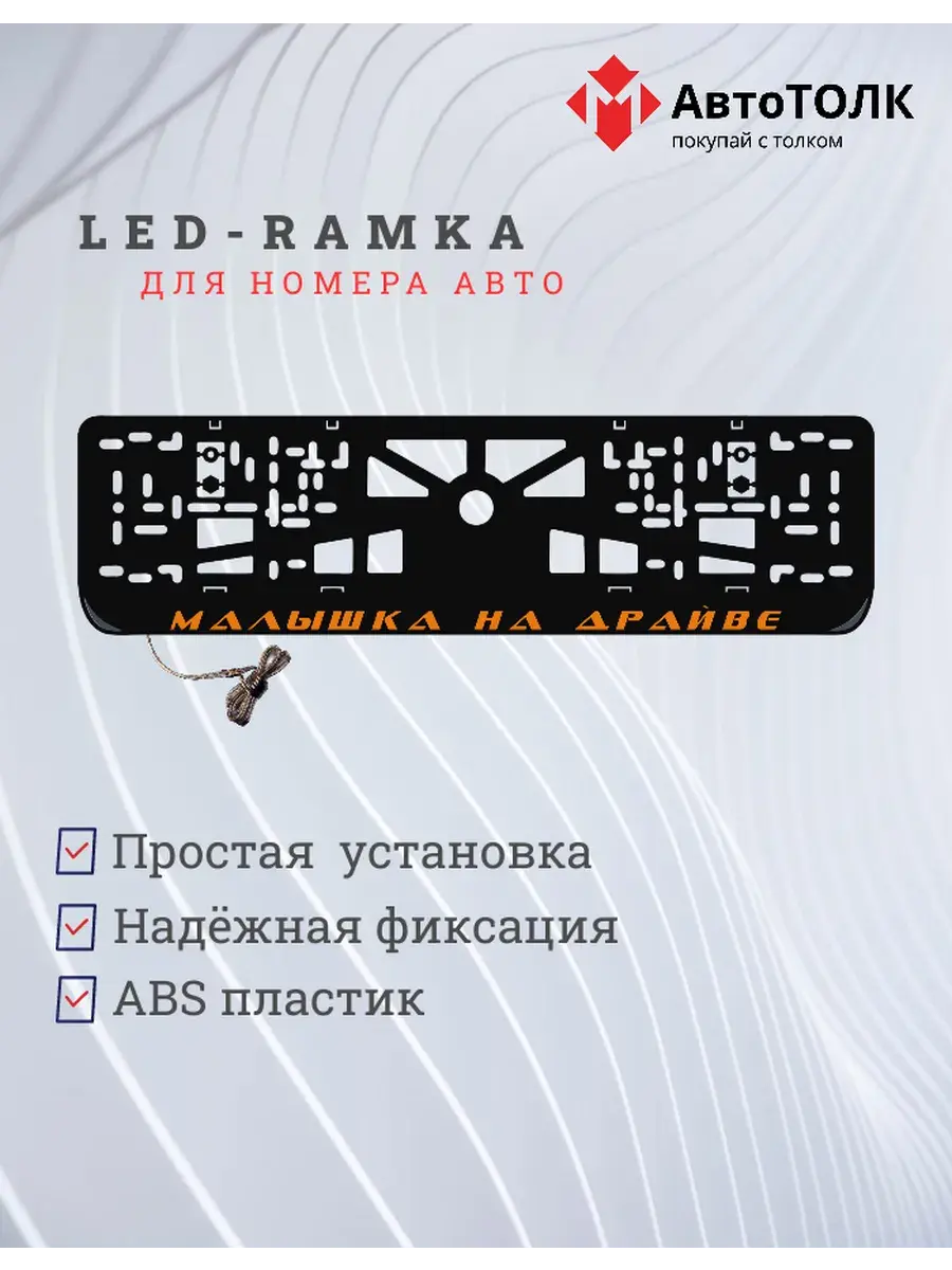 Ищете стильное и практичное обновление для вашего автомобиля? Рамка для номера с LED подсветкой надписи от бренда АвтоТОЛК — именно то, что вам нужно! Это инновационное решение не только придаст вашему автомобилю современный вид, но и повысит его заметность на дороге. Яркая ЛЭД рамка под номер обеспечивает четкое и равномерное освещение, что гарантирует отличную видимость вашего государственного номера в любое время суток и при любых погодных условиях. За счет использования высококачественных LED элементов, рамка отличается длительным сроком службы. Номерная рамка с вашим лого или логотипом торговой марки станет оригинальным дополнением, подчеркивающим индивидуальность вашего авто. Устанавливать рамки с LED подсветкой легко и удобно, они совместимы со стандартными номерными знаками и не требуют специальных навыков для монтажа. Независимо от того, выбираете ли вы рамки с ЛЭД подсветкой для себя или в подарок автолюбителю, этот автоаксессуар станет надежным и стильным приобретением. Тонкий, но прочный корпус рамки выполнен из высококачественных материалов, что обеспечивает устойчивость к механическим повреждениям, влаге и неблагоприятным погодным условиям. Обновите внешний вид своего автомобиля с применением современных технологий — номерные рамки с LED подсветкой от АвтоТОЛК это комбинация стиля, удобства и безопасности.