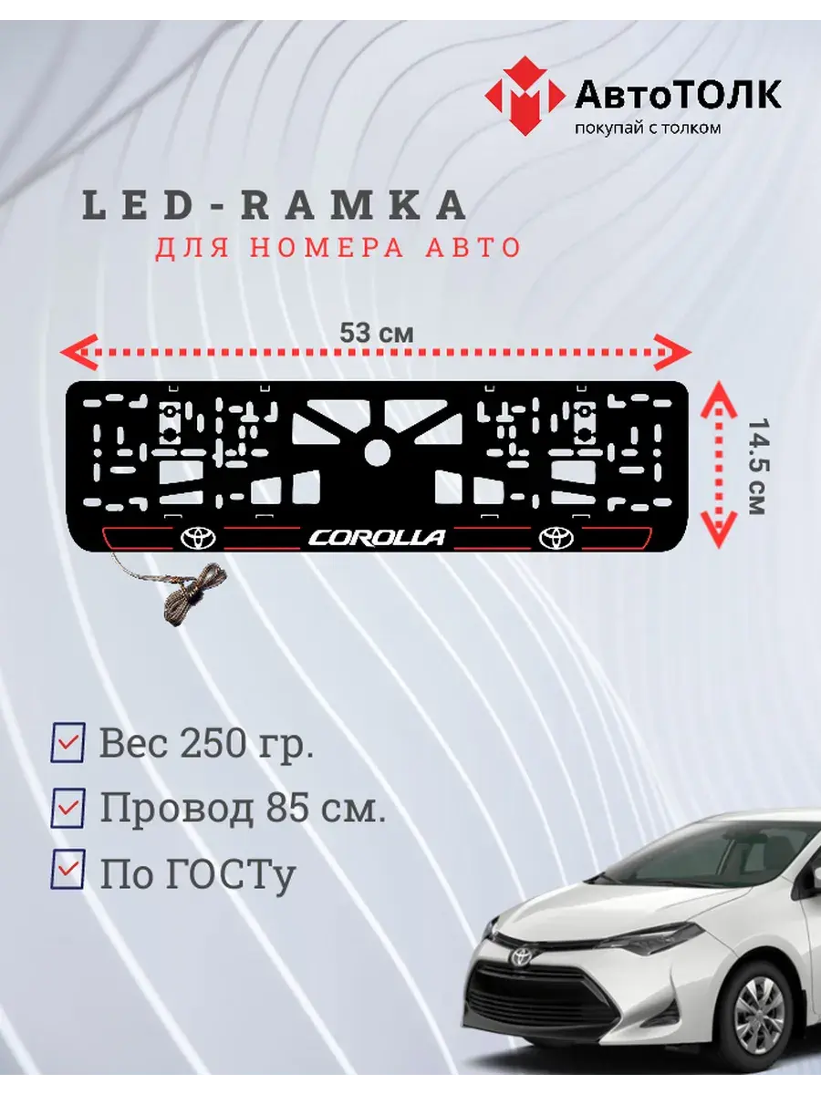 Ищете стильное и практичное обновление для вашего автомобиля? Рамка для номера с LED подсветкой надписи от бренда АвтоТОЛК — именно то, что вам нужно! Это инновационное решение не только придаст вашему автомобилю современный вид, но и повысит его заметность на дороге. Яркая ЛЭД рамка под номер обеспечивает четкое и равномерное освещение, что гарантирует отличную видимость вашего государственного номера в любое время суток и при любых погодных условиях. За счет использования высококачественных LED элементов, рамка отличается длительным сроком службы. Номерная рамка с вашим лого или логотипом торговой марки станет оригинальным дополнением, подчеркивающим индивидуальность вашего авто. Устанавливать рамки с LED подсветкой легко и удобно, они совместимы со стандартными номерными знаками и не требуют специальных навыков для монтажа. Независимо от того, выбираете ли вы рамки с ЛЭД подсветкой для себя или в подарок автолюбителю, этот автоаксессуар станет надежным и стильным приобретением. Тонкий, но прочный корпус рамки выполнен из высококачественных материалов, что обеспечивает устойчивость к механическим повреждениям, влаге и неблагоприятным погодным условиям. Обновите внешний вид своего автомобиля с применением современных технологий — номерные рамки с LED подсветкой от АвтоТОЛК это комбинация стиля, удобства и безопасности.