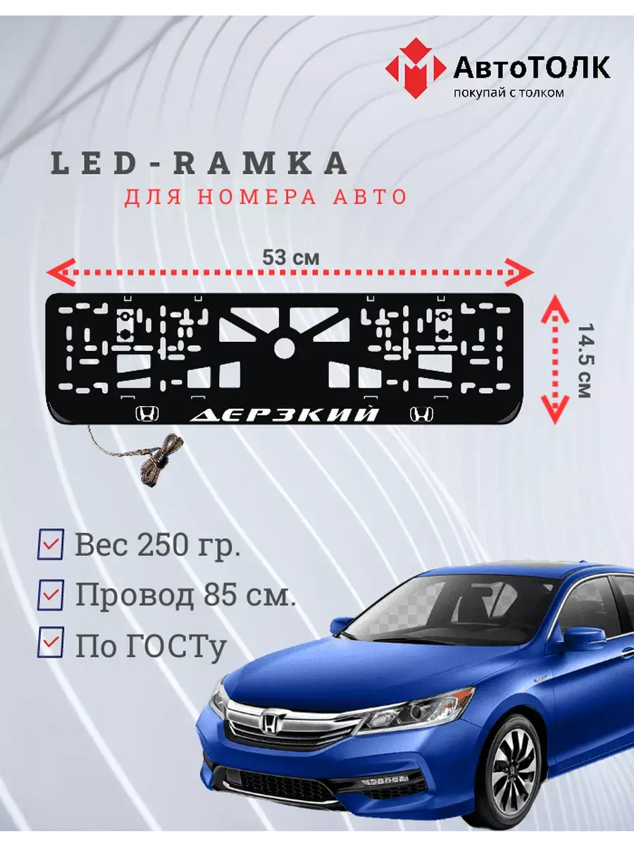 Ищете стильное и практичное обновление для вашего автомобиля? Рамка для номера с LED подсветкой надписи от бренда АвтоТОЛК — именно то, что вам нужно! Это инновационное решение не только придаст вашему автомобилю современный вид, но и повысит его заметность на дороге. Яркая ЛЭД рамка под номер обеспечивает четкое и равномерное освещение, что гарантирует отличную видимость вашего государственного номера в любое время суток и при любых погодных условиях. За счет использования высококачественных LED элементов, рамка отличается длительным сроком службы. Номерная рамка с вашим лого или логотипом торговой марки станет оригинальным дополнением, подчеркивающим индивидуальность вашего авто. Устанавливать рамки с LED подсветкой легко и удобно, они совместимы со стандартными номерными знаками и не требуют специальных навыков для монтажа. Независимо от того, выбираете ли вы рамки с ЛЭД подсветкой для себя или в подарок автолюбителю, этот автоаксессуар станет надежным и стильным приобретением. Тонкий, но прочный корпус рамки выполнен из высококачественных материалов, что обеспечивает устойчивость к механическим повреждениям, влаге и неблагоприятным погодным условиям. Обновите внешний вид своего автомобиля с применением современных технологий — номерные рамки с LED подсветкой от АвтоТОЛК это комбинация стиля, удобства и безопасности.