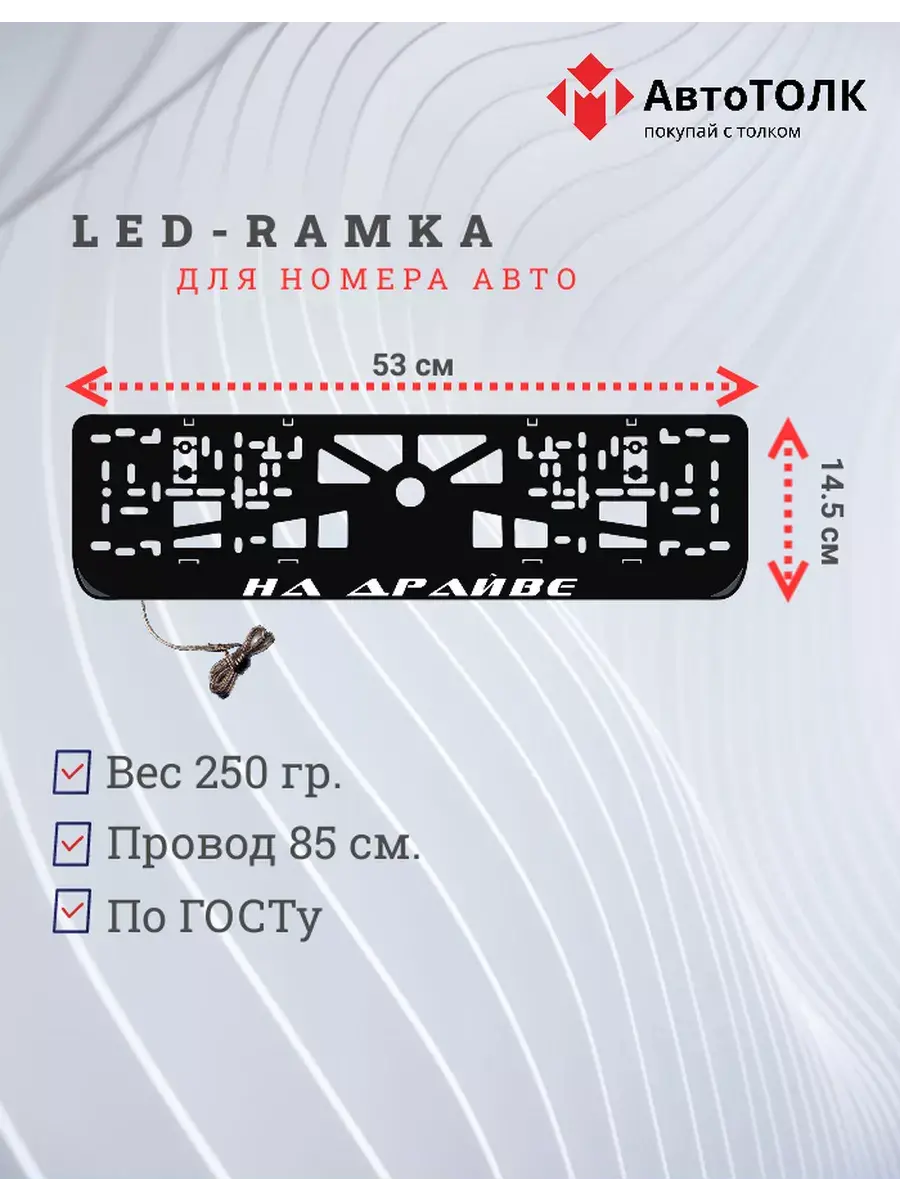 Ищете стильное и практичное обновление для вашего автомобиля? Рамка для номера с LED подсветкой надписи от бренда АвтоТОЛК именно то, что вам нужно! Это инновационное решение не только придаст вашему автомобилю современный вид, но и повысит его заметность на дороге. Яркая ЛЭД рамка под номер обеспечивает четкое и равномерное освещение, что гарантирует отличную видимость вашего государственного номера в любое время суток и при любых погодных условиях. За счет использования высококачественных LED элементов, рамка отличается длительным сроком службы. Номерная рамка с вашим лого или логотипом торговой марки станет оригинальным дополнением, подчеркивающим индивидуальность вашего авто. Устанавливать рамки с LED подсветкой легко и удобно, они совместимы со стандартными номерными знаками и не требуют специальных навыков для монтажа. Независимо от того, выбираете ли вы рамки с ЛЭД подсветкой для себя или в подарок автолюбителю, этот автоаксессуар станет надежным и стильным приобретением. Тонкий, но прочный корпус рамки выполнен из высококачественных материалов, что обеспечивает устойчивость к механическим повреждениям, влаге и неблагоприятным погодным условиям. Обновите внешний вид своего автомобиля с применением современных технологий номерные рамки с LED подсветкой от АвтоТОЛК это комбинация стиля, удобства и безопасности.
