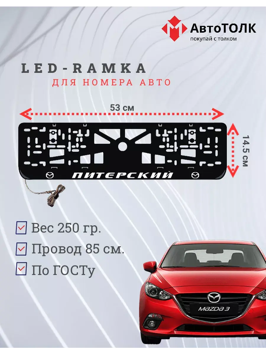 Ищете стильное и практичное обновление для вашего автомобиля? Рамка для номера с LED подсветкой надписи от бренда АвтоТОЛК — именно то, что вам нужно! Это инновационное решение не только придаст вашему автомобилю современный вид, но и повысит его заметность на дороге. Яркая ЛЭД рамка под номер обеспечивает четкое и равномерное освещение, что гарантирует отличную видимость вашего государственного номера в любое время суток и при любых погодных условиях. За счет использования высококачественных LED элементов, рамка отличается длительным сроком службы. Номерная рамка с вашим лого или логотипом торговой марки станет оригинальным дополнением, подчеркивающим индивидуальность вашего авто. Устанавливать рамки с LED подсветкой легко и удобно, они совместимы со стандартными номерными знаками и не требуют специальных навыков для монтажа. Независимо от того, выбираете ли вы рамки с ЛЭД подсветкой для себя или в подарок автолюбителю, этот автоаксессуар станет надежным и стильным приобретением. Тонкий, но прочный корпус рамки выполнен из высококачественных материалов, что обеспечивает устойчивость к механическим повреждениям, влаге и неблагоприятным погодным условиям. Обновите внешний вид своего автомобиля с применением современных технологий — номерные рамки с LED подсветкой от АвтоТОЛК это комбинация стиля, удобства и безопасности.