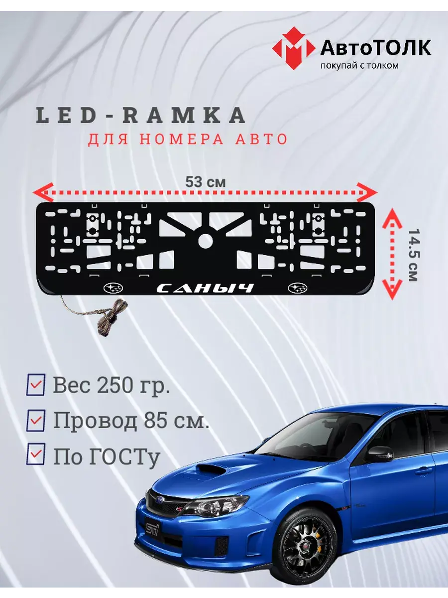 Ищете стильное и практичное обновление для вашего автомобиля? Рамка для номера с LED подсветкой надписи от бренда АвтоТОЛК — именно то, что вам нужно! Это инновационное решение не только придаст вашему автомобилю современный вид, но и повысит его заметность на дороге. Яркая ЛЭД рамка под номер обеспечивает четкое и равномерное освещение, что гарантирует отличную видимость вашего государственного номера в любое время суток и при любых погодных условиях. За счет использования высококачественных LED элементов, рамка отличается длительным сроком службы. Номерная рамка с вашим лого или логотипом торговой марки станет оригинальным дополнением, подчеркивающим индивидуальность вашего авто. Устанавливать рамки с LED подсветкой легко и удобно, они совместимы со стандартными номерными знаками и не требуют специальных навыков для монтажа. Независимо от того, выбираете ли вы рамки с ЛЭД подсветкой для себя или в подарок автолюбителю, этот автоаксессуар станет надежным и стильным приобретением. Тонкий, но прочный корпус рамки выполнен из высококачественных материалов, что обеспечивает устойчивость к механическим повреждениям, влаге и неблагоприятным погодным условиям. Обновите внешний вид своего автомобиля с применением современных технологий — номерные рамки с LED подсветкой от АвтоТОЛК это комбинация стиля, удобства и безопасности.