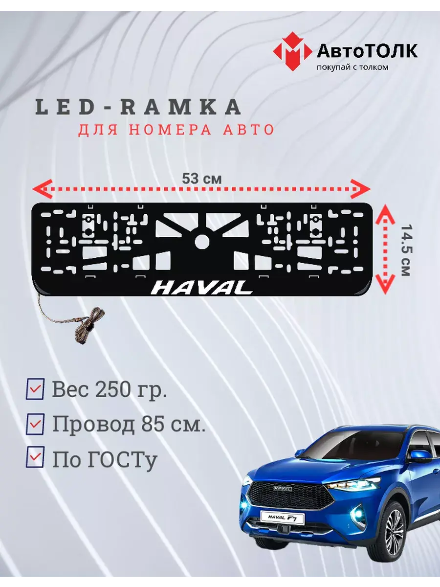 Продам уникальные Авто рамки с подсветкой для Haval!Вы ищете способ выделиться из толпы и добавить индивидуальности вашему автомобилю Haval? Тогда наше предложение специально для вас! Представляем вашему вниманию уникальные Авто рамки с подсветкой, которые не только обеспечат безопасность и быстроту установки номеров, но и создадут неповторимый стиль вашего авто.