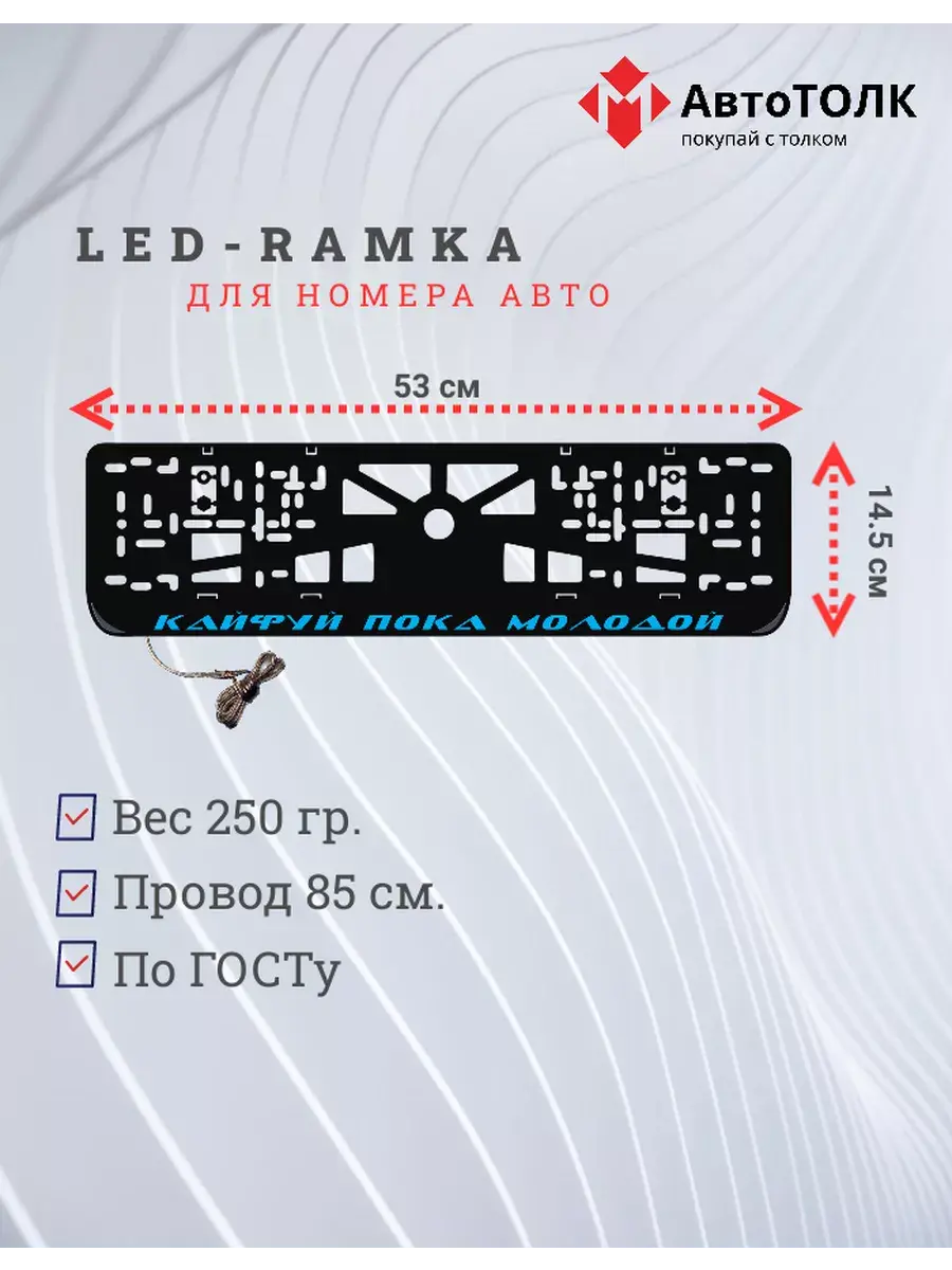 Ищете стильное и практичное обновление для вашего автомобиля? Рамка для номера с LED подсветкой надписи от бренда АвтоТОЛК — именно то, что вам нужно! Это инновационное решение не только придаст вашему автомобилю современный вид, но и повысит его заметность на дороге. Яркая ЛЭД рамка под номер обеспечивает четкое и равномерное освещение, что гарантирует отличную видимость вашего государственного номера в любое время суток и при любых погодных условиях. За счет использования высококачественных LED элементов, рамка отличается длительным сроком службы. Номерная рамка с вашим лого или логотипом торговой марки станет оригинальным дополнением, подчеркивающим индивидуальность вашего авто. Устанавливать рамки с LED подсветкой легко и удобно, они совместимы со стандартными номерными знаками и не требуют специальных навыков для монтажа. Независимо от того, выбираете ли вы рамки с ЛЭД подсветкой для себя или в подарок автолюбителю, этот автоаксессуар станет надежным и стильным приобретением. Тонкий, но прочный корпус рамки выполнен из высококачественных материалов, что обеспечивает устойчивость к механическим повреждениям, влаге и неблагоприятным погодным условиям. Обновите внешний вид своего автомобиля с применением современных технологий — номерные рамки с LED подсветкой от АвтоТОЛК это комбинация стиля, удобства и безопасности.