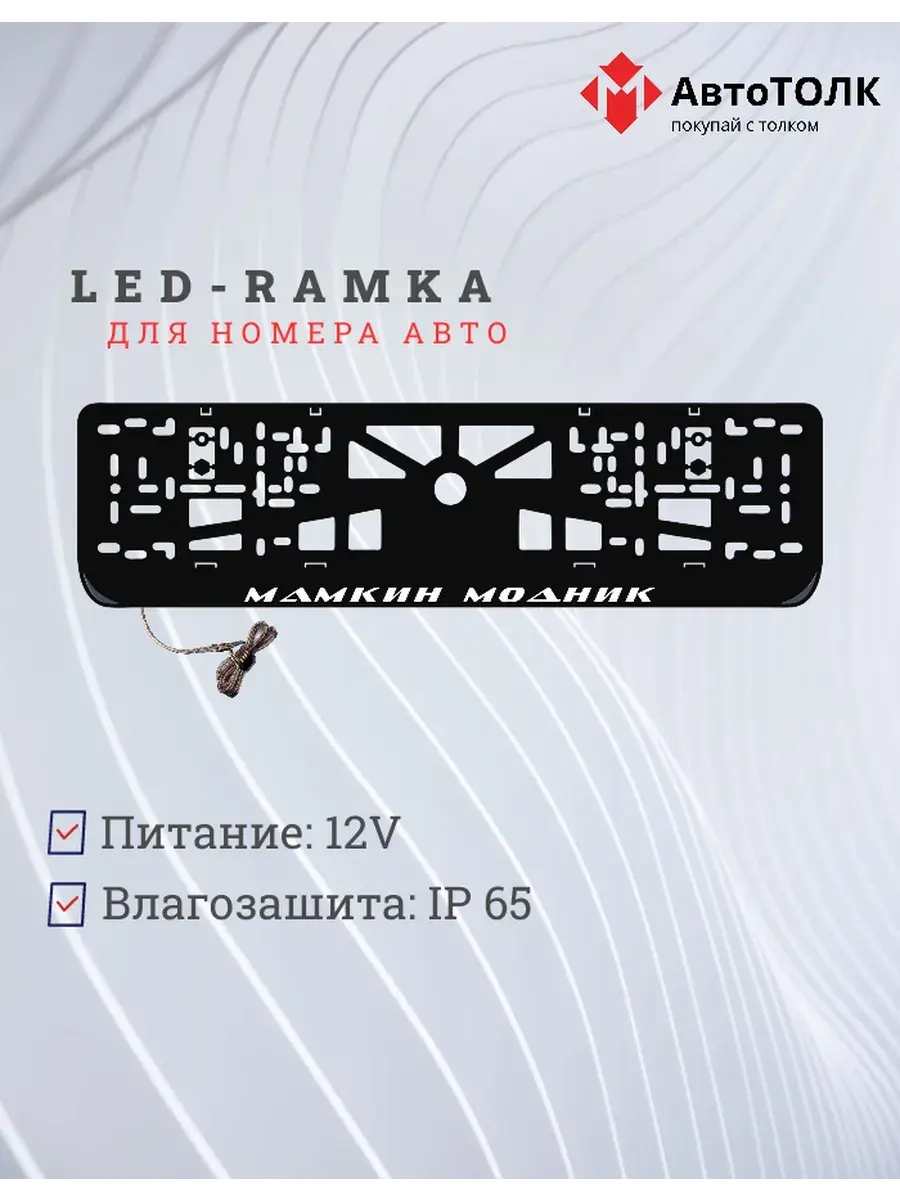 Ищете стильное и практичное обновление для вашего автомобиля? Рамка для номера с LED подсветкой надписи от бренда АвтоТОЛК — именно то, что вам нужно! Это инновационное решение не только придаст вашему автомобилю современный вид, но и повысит его заметность на дороге. Яркая ЛЭД рамка под номер обеспечивает четкое и равномерное освещение, что гарантирует отличную видимость вашего государственного номера в любое время суток и при любых погодных условиях. За счет использования высококачественных LED элементов, рамка отличается длительным сроком службы. Номерная рамка с вашим лого или логотипом торговой марки станет оригинальным дополнением, подчеркивающим индивидуальность вашего авто. Устанавливать рамки с LED подсветкой легко и удобно, они совместимы со стандартными номерными знаками и не требуют специальных навыков для монтажа. Независимо от того, выбираете ли вы рамки с ЛЭД подсветкой для себя или в подарок автолюбителю, этот автоаксессуар станет надежным и стильным приобретением. Тонкий, но прочный корпус рамки выполнен из высококачественных материалов, что обеспечивает устойчивость к механическим повреждениям, влаге и неблагоприятным погодным условиям. Обновите внешний вид своего автомобиля с применением современных технологий — номерные рамки с LED подсветкой от АвтоТОЛК это комбинация стиля, удобства и безопасности.