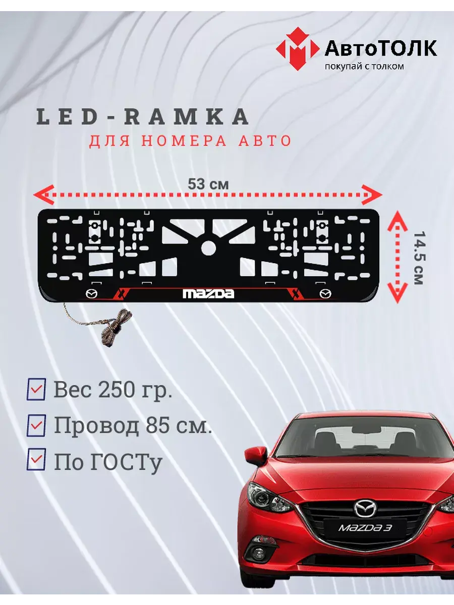 Ищете стильное и практичное обновление для вашего автомобиля? Рамка для номера с LED подсветкой надписи от бренда АвтоТОЛК — именно то, что вам нужно! Это инновационное решение не только придаст вашему автомобилю современный вид, но и повысит его заметность на дороге. Яркая ЛЭД рамка под номер обеспечивает четкое и равномерное освещение, что гарантирует отличную видимость вашего государственного номера в любое время суток и при любых погодных условиях. За счет использования высококачественных LED элементов, рамка отличается длительным сроком службы. Номерная рамка с вашим лого или логотипом торговой марки станет оригинальным дополнением, подчеркивающим индивидуальность вашего авто. Устанавливать рамки с LED подсветкой легко и удобно, они совместимы со стандартными номерными знаками и не требуют специальных навыков для монтажа. Независимо от того, выбираете ли вы рамки с ЛЭД подсветкой для себя или в подарок автолюбителю, этот автоаксессуар станет надежным и стильным приобретением. Тонкий, но прочный корпус рамки выполнен из высококачественных материалов, что обеспечивает устойчивость к механическим повреждениям, влаге и неблагоприятным погодным условиям. Обновите внешний вид своего автомобиля с применением современных технологий — номерные рамки с LED подсветкой от АвтоТОЛК это комбинация стиля, удобства и безопасности.