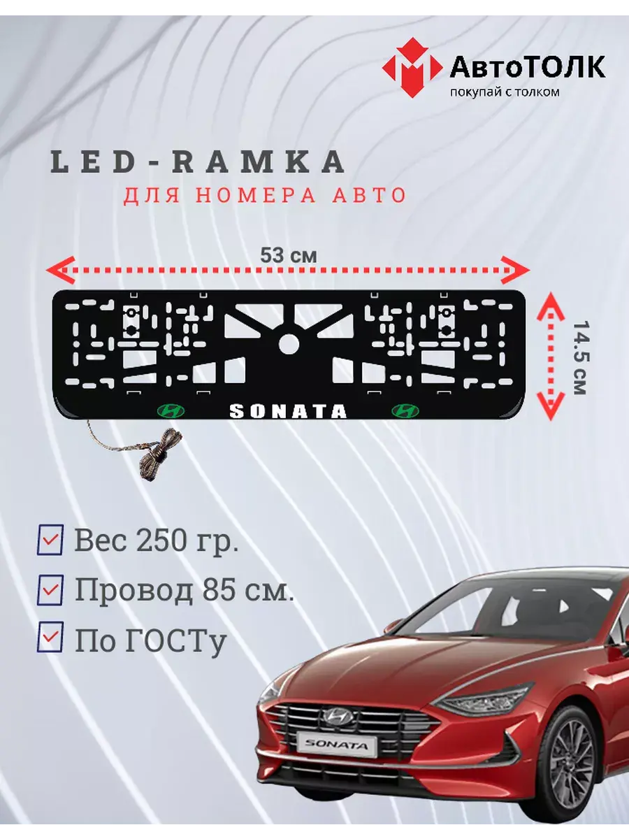 Ищете стильное и практичное обновление для вашего автомобиля? Рамка для номера с LED подсветкой надписи от бренда АвтоТОЛК именно то, что вам нужно! Это инновационное решение не только придаст вашему автомобилю современный вид, но и повысит его заметность на дороге. Яркая ЛЭД рамка под номер обеспечивает четкое и равномерное освещение, что гарантирует отличную видимость вашего государственного номера в любое время суток и при любых погодных условиях. За счет использования высококачественных LED элементов, рамка отличается длительным сроком службы. Номерная рамка с вашим лого или логотипом торговой марки станет оригинальным дополнением, подчеркивающим индивидуальность вашего авто. Устанавливать рамки с LED подсветкой легко и удобно, они совместимы со стандартными номерными знаками и не требуют специальных навыков для монтажа. Независимо от того, выбираете ли вы рамки с ЛЭД подсветкой для себя или в подарок автолюбителю, этот автоаксессуар станет надежным и стильным приобретением. Тонкий, но прочный корпус рамки выполнен из высококачественных материалов, что обеспечивает устойчивость к механическим повреждениям, влаге и неблагоприятным погодным условиям. Обновите внешний вид своего автомобиля с применением современных технологий номерные рамки с LED подсветкой от АвтоТОЛК это комбинация стиля, удобства и безопасности.